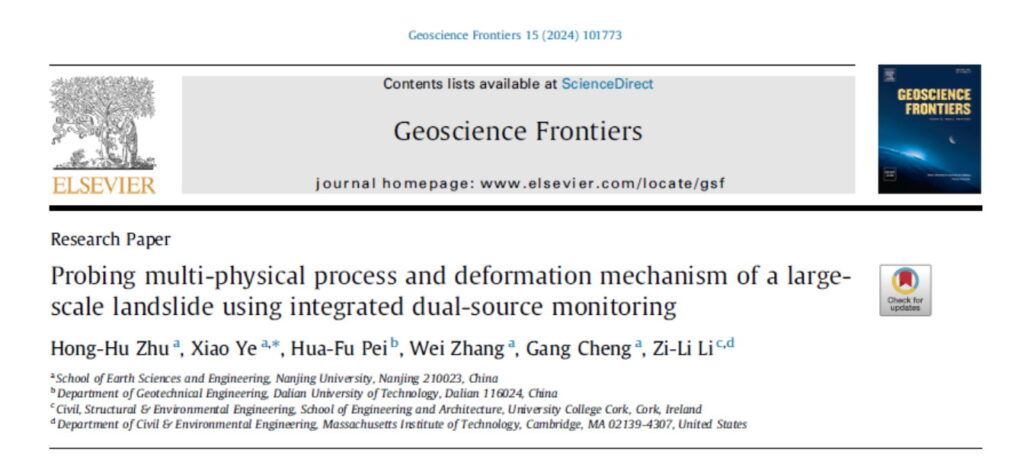 近日,《Geoscience Frontiers》期刊发表了题为《Probing multi-physical process and deformation mechanism of a large-scale landslide using integrated dual-source monitoring》的论文。该研究由朱鸿鹄教授、叶霄博士、裴华富教授、张巍副教授、程刚教授和李孜理副教授等学者共同完成。他们分别来自南京大学地球科学与工程学院、大连理工大学岩土工程系、爱尔兰科克大学工程与建筑学院、美国麻省理工学院土木与环境工程系。